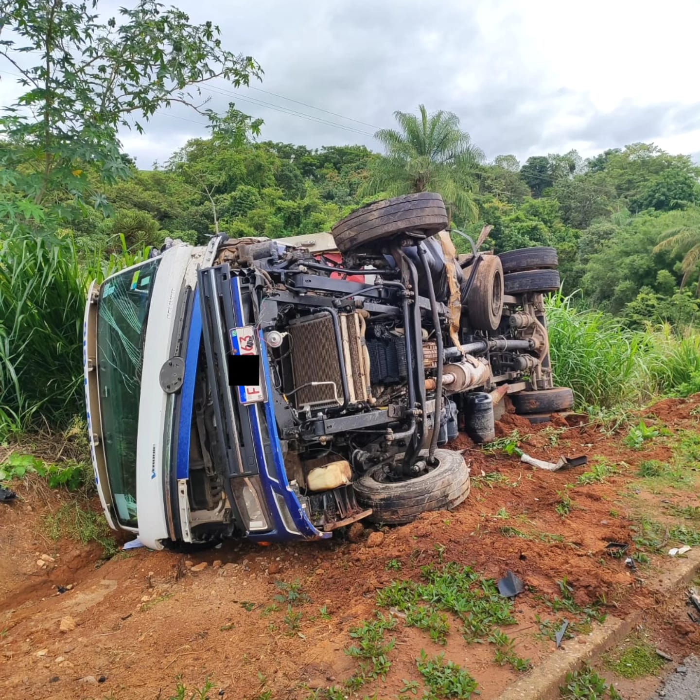 Em consequência da colisão, o caminhão tombou às margens da pista e atingiu um poste. Os ocupantes do caminhão tiveram apenas ferimentos leves e foram atendidos no local.
