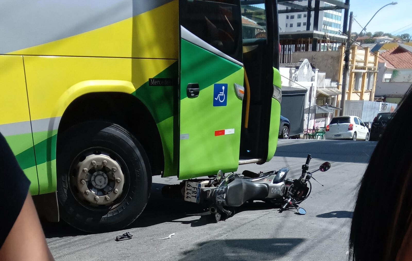O motorista informou que o ônibus não apresentou danos aparentes, enquanto a motocicleta teria sofrido possíveis avarias no retrovisor.