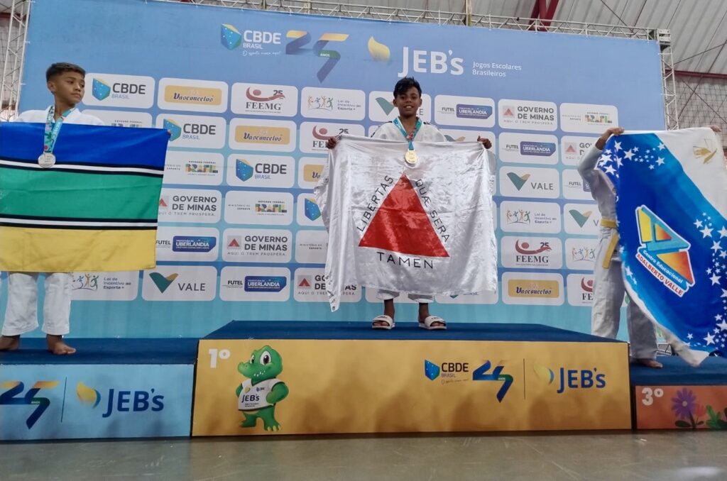 O atleta Nicolas Gabriel da Silveira, aluno do Colégio Municipal Dr. José Vargas de Souza e integrante do Projeto Judô Juca Cobra, conquistou o título de campeão brasileiro na categoria superligeiro, módulo 1, nos Jogos Escolares Brasileiros (JEBs) 2025, realizados em Uberlândia (MG).