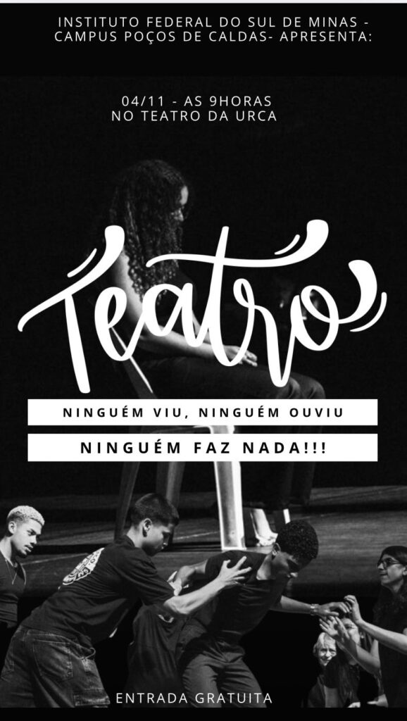 Nesta terça-feira, às 9h, será realizada a apresentação da peça: “Ninguém viu, ninguém ouviu, ninguém faz nada’.
