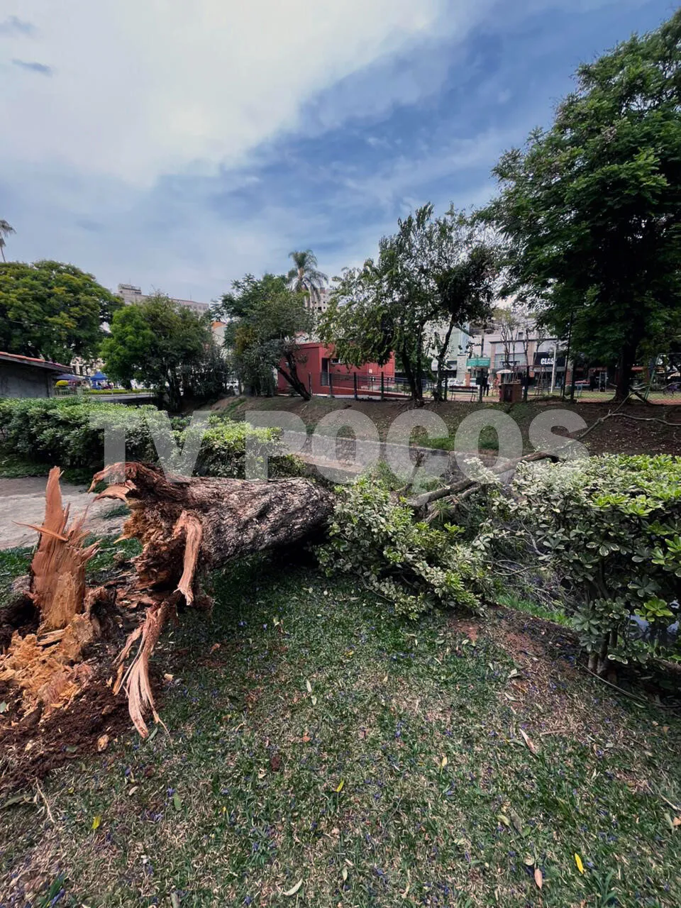 Uma árvore de grande porte caiu na tarde deste sábado (04), no Parque José Affonso Junqueira, em Poços de Caldas. Ninguém ficou ferido.