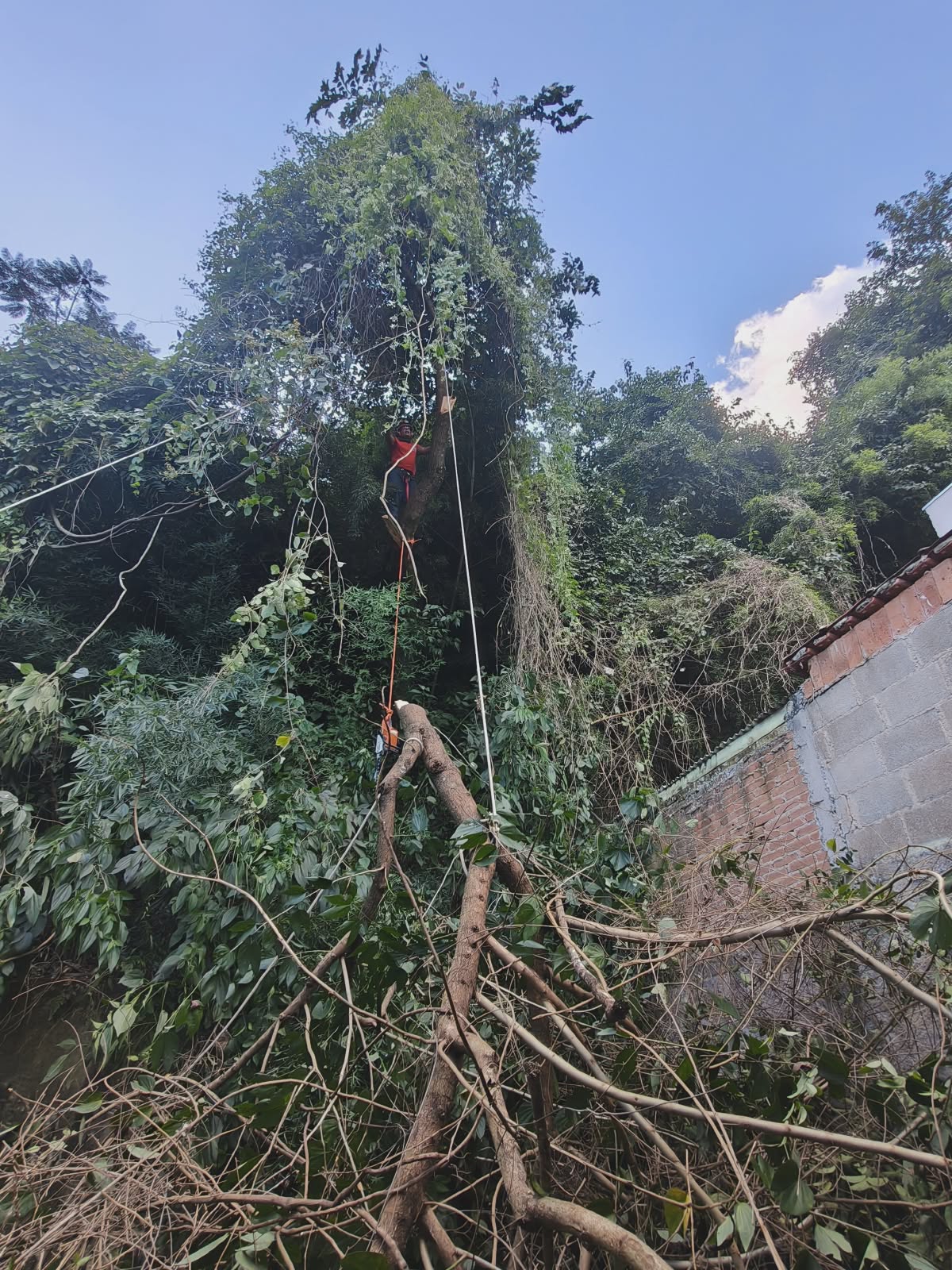 Com apoio e autorização da Defesa Civil Municipal e da Secretaria de Meio Ambiente, a equipe iniciou os trabalhos de corte controlado. A operação durou cerca de duas horas e resultou na supressão total da árvore, eliminando o risco para os moradores.