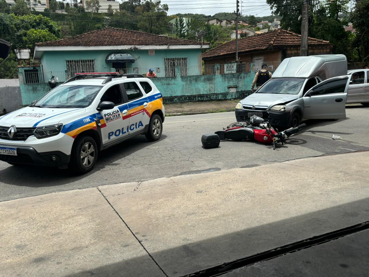 Uma batida entre carro e moto deixou um motociclista ferido na manhã desta quarta-feira (4) na rua Coronel Virgílio Silva, zona leste de Poços de Caldas.