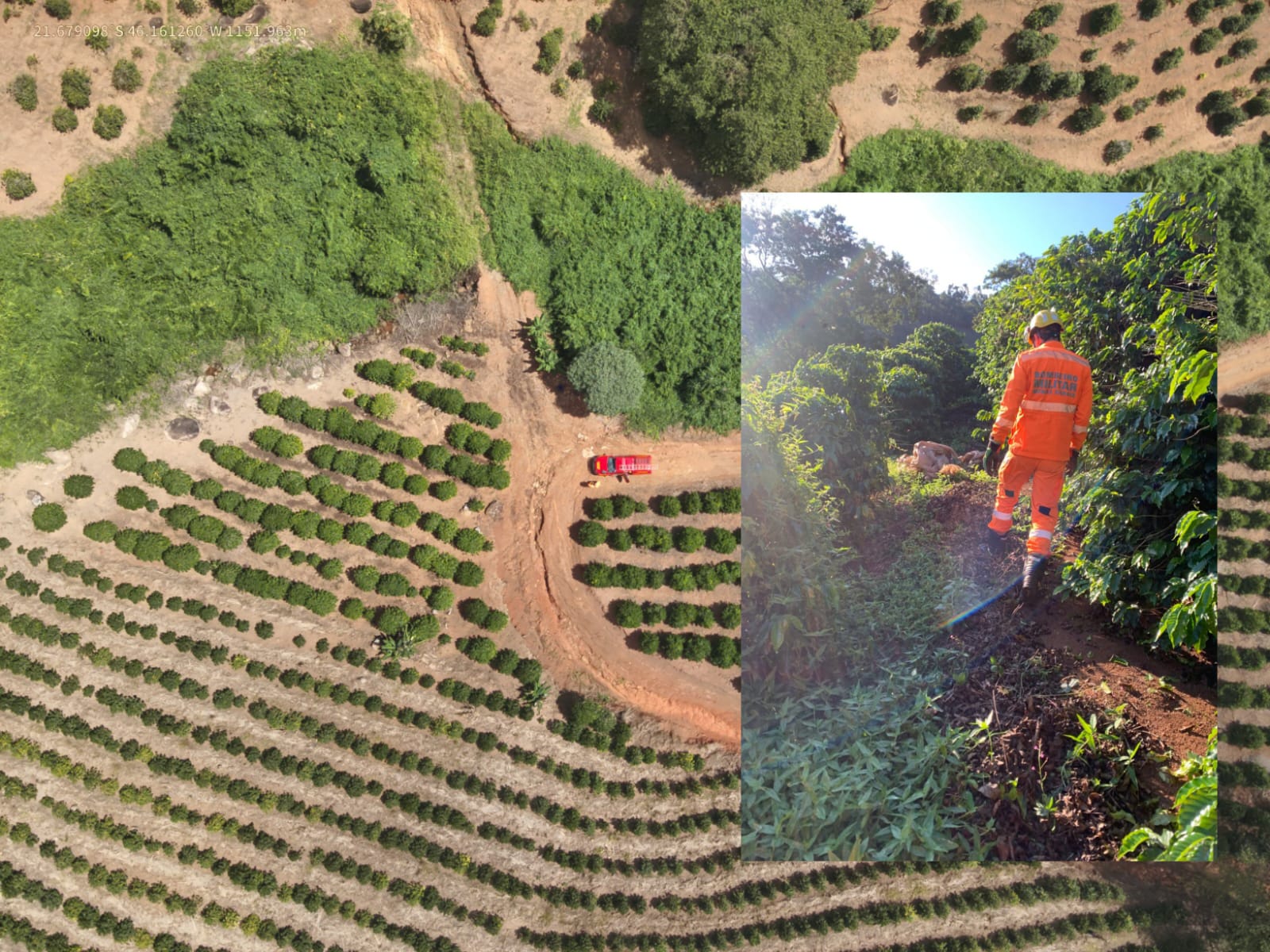 As equipes atuam em uma área extensa, que inclui lavouras de café, trechos de mata e imediações de um curso d’água. Para ampliar o alcance das varreduras, os militares utilizam drone (RPA), além de buscas terrestres realizadas por equipes especializadas.