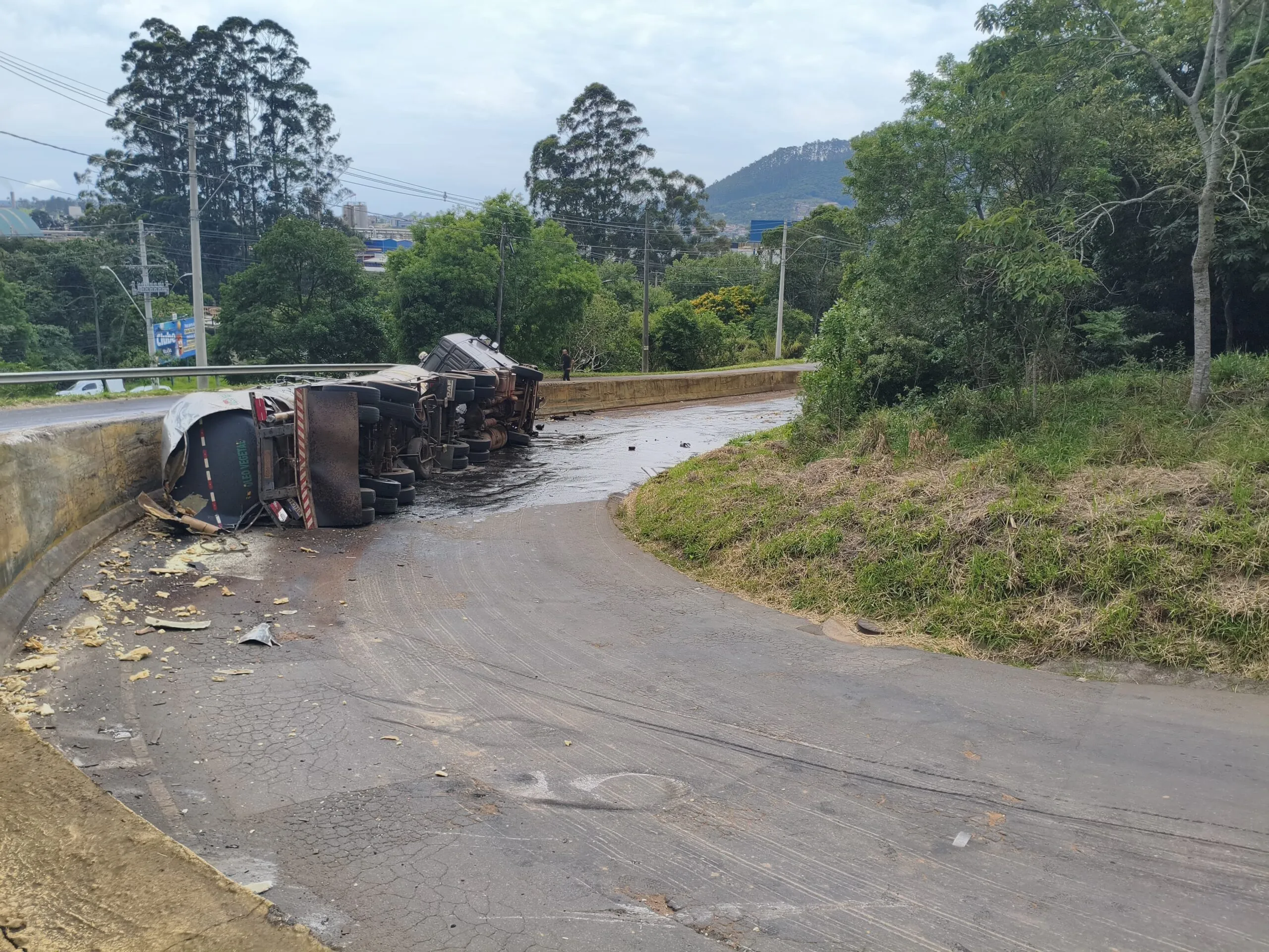 Uma carreta carregada com óleo vegetal tombou no final da manhã desta terça-feira (2) no Km 1 da AMG-1545, mais conhecida como Serra do Campestrinho, em Poços de Caldas.