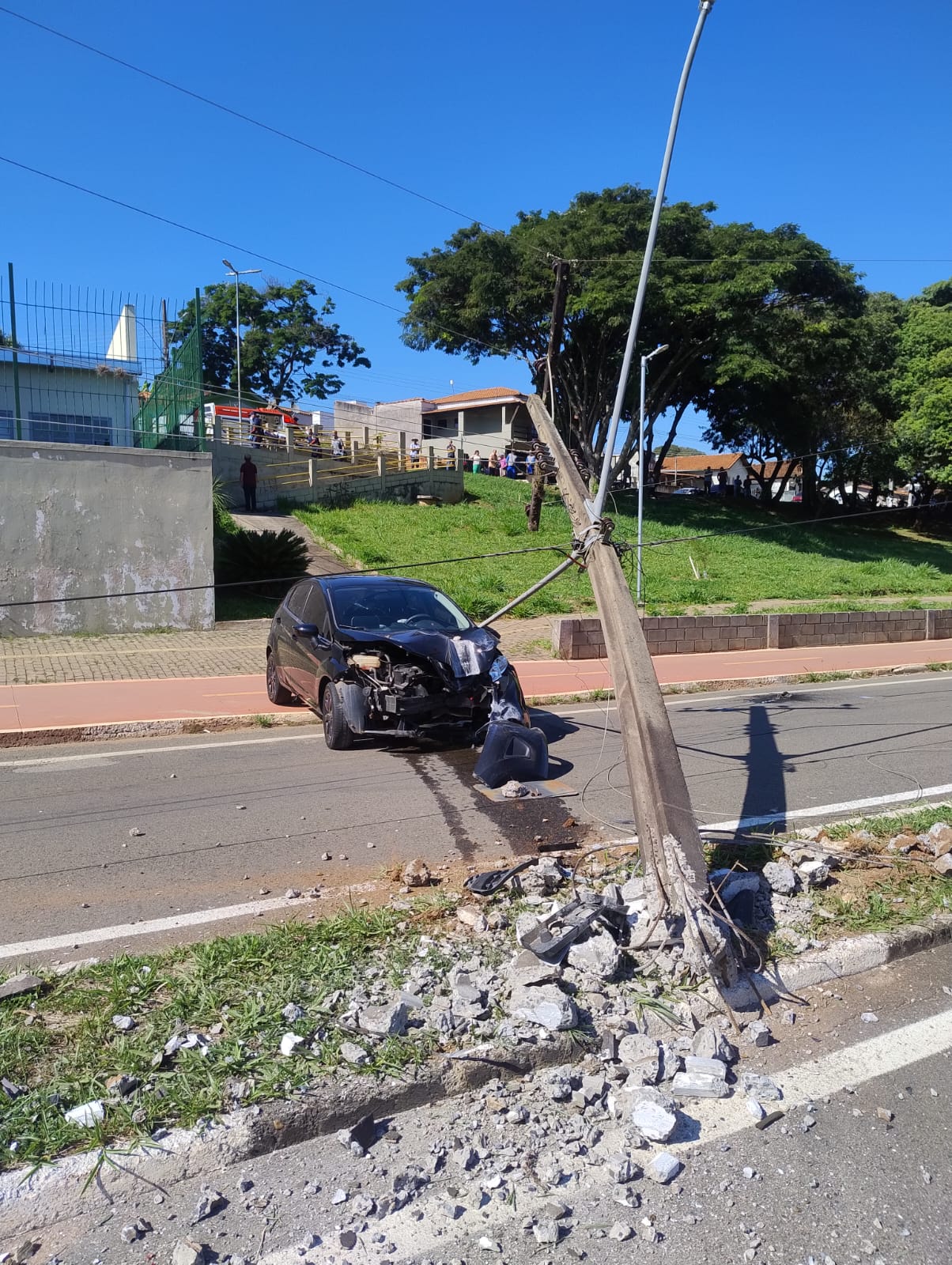 De acordo com os bombeiros, um Ford Fiesta colidiu contra um poste de rede elétrica. Com o impacto, a estrutura de alta tensão caiu sobre a via, gerando faíscas no solo e oferecendo risco a pedestres e motoristas que passavam pelo local.
