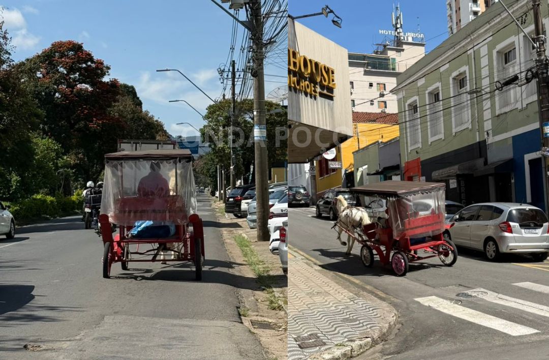 Uma charrete foi flagrada circulando pela Avenida João Pinheiro, em Poços de Caldas, na tarde desta quinta-feira (30), em um trecho onde o tráfego desse tipo de veículo é proibido por decreto municipal. A ocorrência foi registrada por agentes de trânsito após denúncias feitas por moradores.