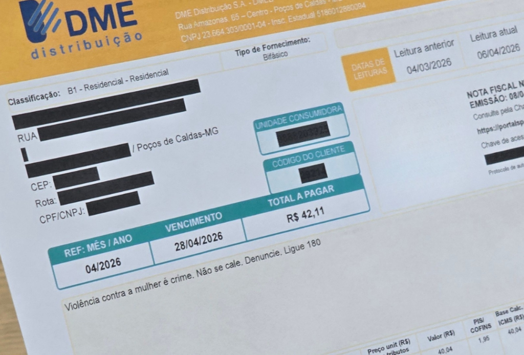 Em uma iniciativa inédita no país, as distribuidoras de energia passaram a incluir o número de telefone 180, canal de atendimento à mulher, nas contas de energia elétrica. E o DMED não ficou de fora. A iniciativa, realizada em parceria com o governo federal no âmbito do Pacto Nacional de Prevenção aos Feminicídios, já começou a ser implementada pelas distribuidoras em todo o país, incluindo o DMED.