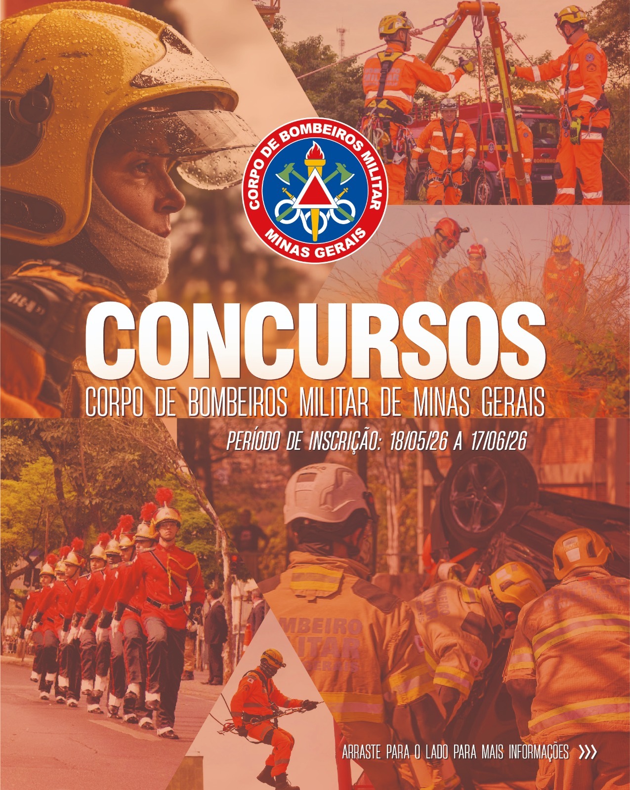 O Corpo de Bombeiros Militar de Minas Gerais publicou os editais do concurso público 2027 com oferta de 342 vagas para os cursos de formação de oficiais (CFO) e soldados (CFSd). A seleção é voltada a candidatos com nível superior completo e interesse em ingressar na carreira militar no estado.
