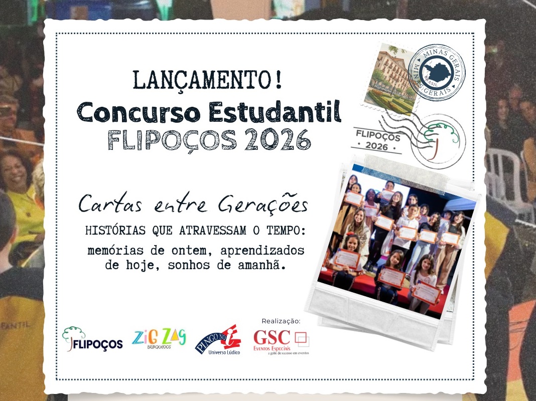 Desta vez, uma das mais importantes atividades para o público local, foi lançada no último dia 25 de novembro. Trata-se do tradicional Concurso Estudantil Flipoços, uma das ações mais queridas do público escolar e da população poços-caldense. A iniciativa envolve escolas municipais, estaduais e particulares, com ampla adesão de alunos do ensino fundamental e médio. Em 2025, o concurso recebeu mais de 400 inscrições entre redações e desenhos.