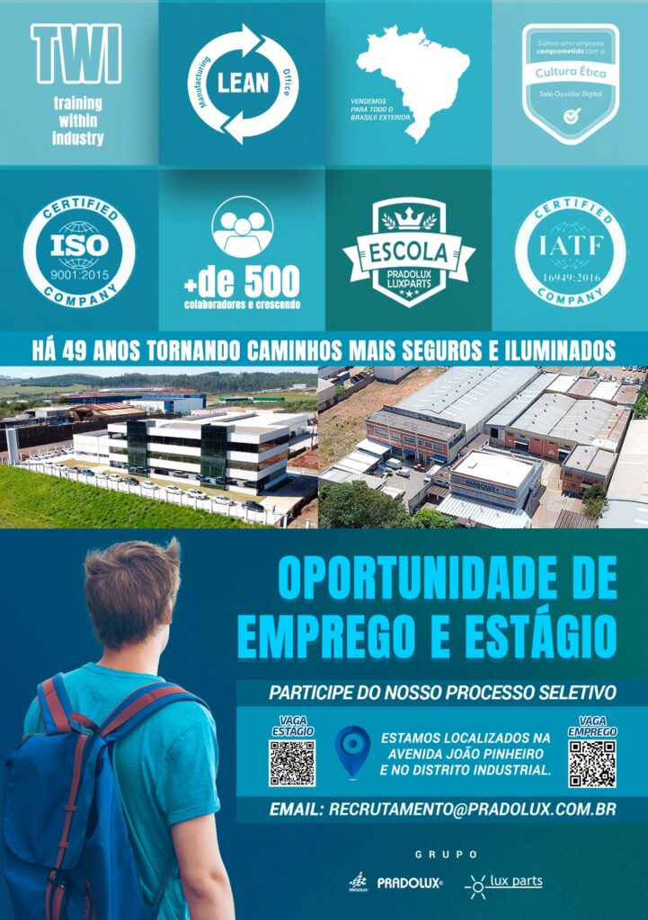 O Grupo Pradolux e Luxparts está com vagas abertas para homens e mulheres interessados em atuar na área de produção. Não é necessário ter experiência anterior, sendo uma excelente oportunidade para quem busca o primeiro emprego ou deseja mudar de área.