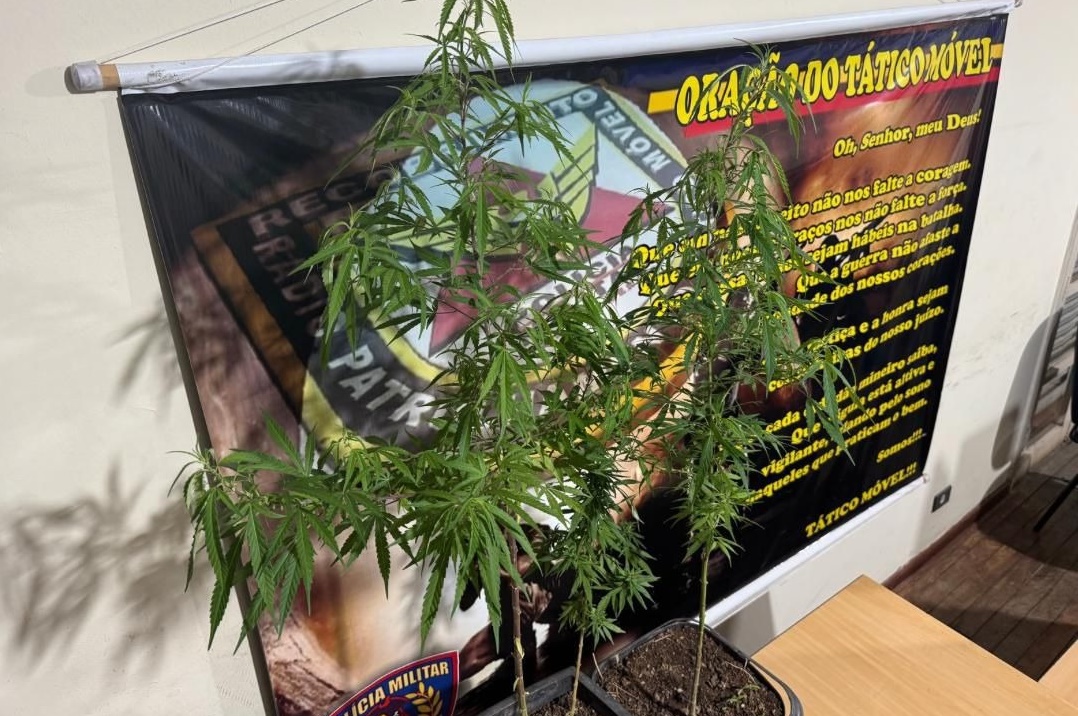 De acordo com a Polícia Militar, a equipe do Tático Móvel foi até o local após receber uma denúncia anônima informando que o suspeito estaria cultivando maconha em sua residência.