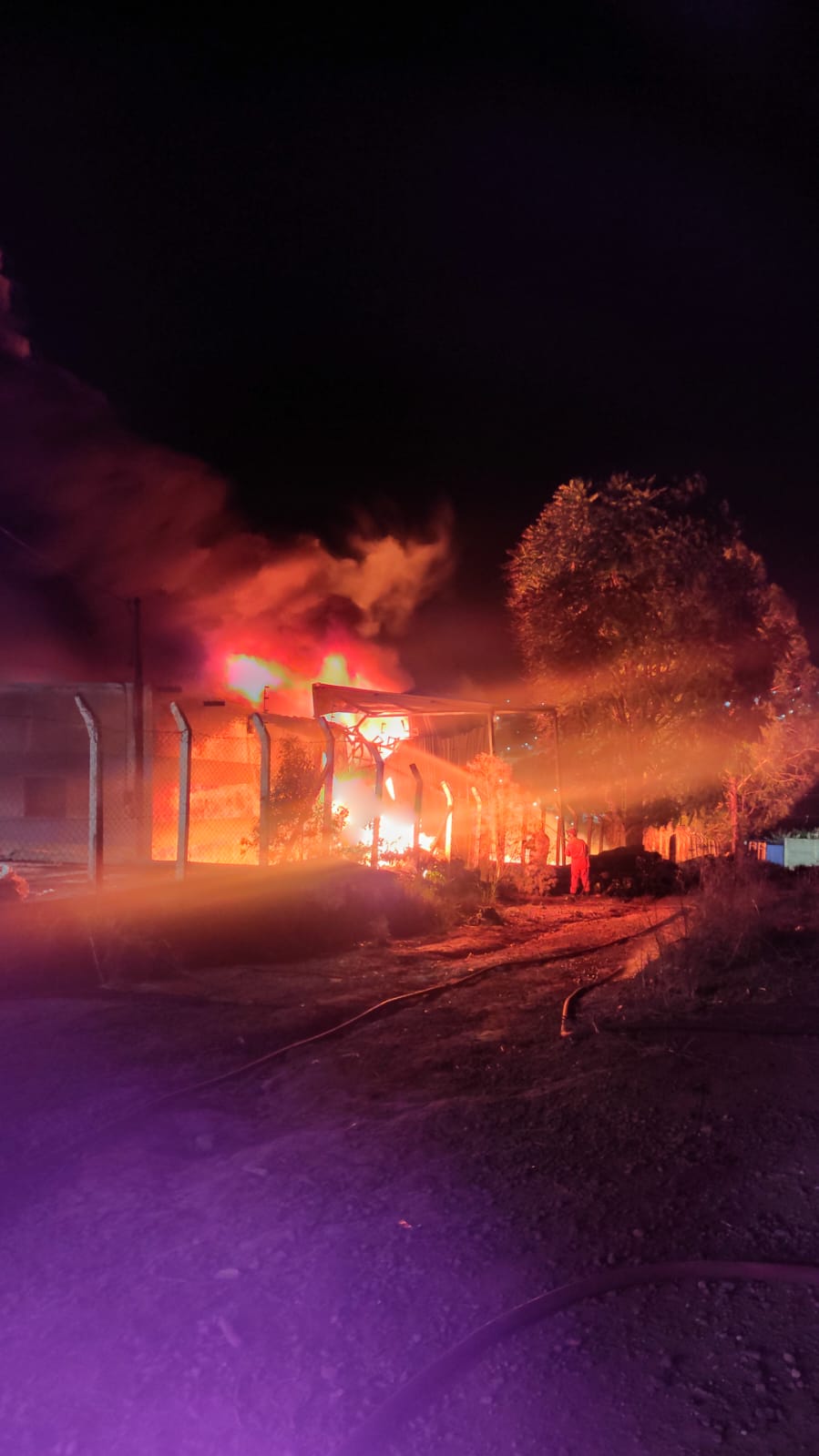 Um incêndio atingiu um galpão no bairro Distrito, em Alfenas, na noite de sexta-feira (03). O fogo consumiu grande quantidade de bags de polipropileno e se espalhou para o interior da edificação, onde estavam um compressor, uma cozinha com botijão de gás e máquinas da área de produção.