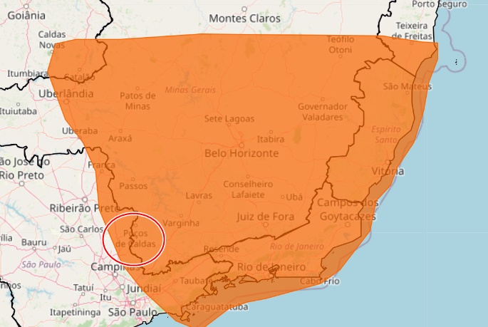 O Instituto Nacional de Meteorologia (Inmet) renovou, nesta terça-feira (18), o alerta laranja de temporal para Poços de Caldas e outras cidades de Minas Gerais.