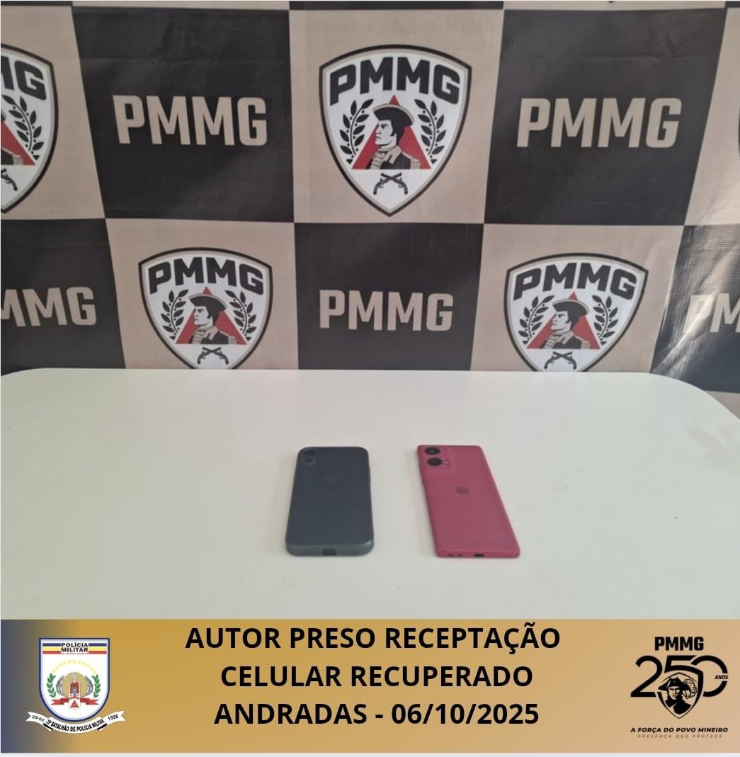 Um jovem de 19 anos foi preso por receptação e um celular furtado foi recuperado pela Polícia Militar na noite de terça-feira (7), em Andradas. O aparelho foi localizado após a vítima rastrear o dispositivo e indicar que ele estava em uma residência na Rua 25, no bairro Manoel Alves, região conhecida por denúncias de tráfico de drogas.
