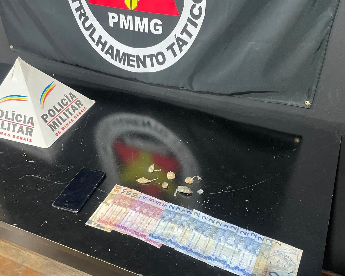 Segundo a Polícia Militar, durante a aproximação policial, um indivíduo foi visto arremessando um objeto em direção a uma área de mata. Com o apoio do cão farejador Ranger, os policiais localizaram cinco porções de crack, uma bucha de maconha e uma porção de haxixe.