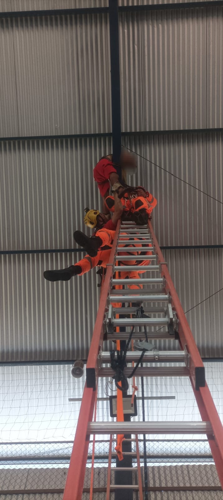 Um homem de 23 anos precisou ser resgatado pelo Corpo de Bombeiros após ficar retido na estrutura superior de uma quadra poliesportiva no bairro Pinheirinho, em Alfenas, na tarde desta quinta-feira (25).