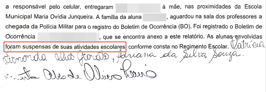 Ainda de acordo com a PM, uma das adolescentes foi encaminhada para avaliação médica, e todas as partes foram devidamente orientadas quanto aos procedimentos legais e escolares cabíveis.