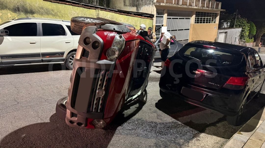 De acordo com o Departamento Municipal de Trânsito (Demutran), o condutor de uma Fiat Strada perdeu o controle da direção, colidiu contra dois veículos que estavam estacionados e, em seguida, o veículo tombou na via.