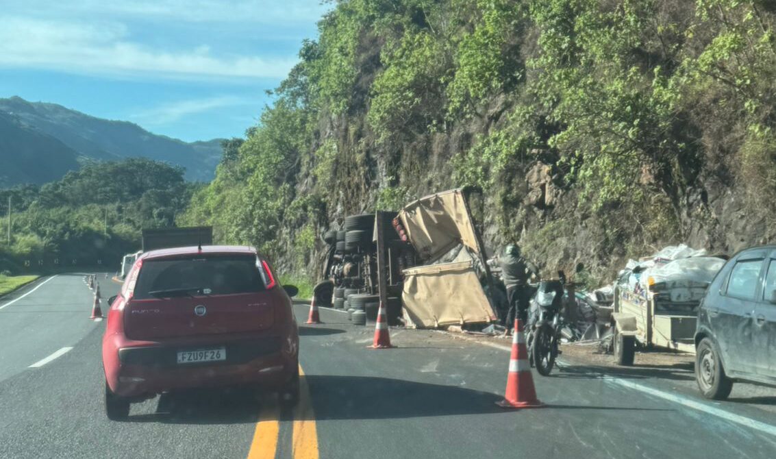 A causa do tombamento será investigada. Houve lentidão no fluxo de veículos durante o atendimento, mas sem bloqueio total da pista.