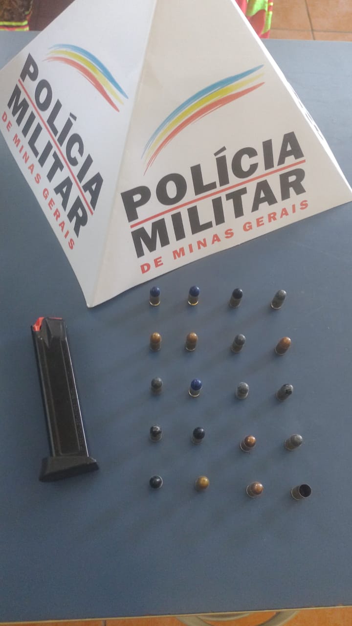 Durante a busca veicular, os policiais encontraram um carregador contendo 18 munições calibre .380. Em frente a uma residência, foram localizados um cartucho deflagrado, outro intacto e manchas de sangue no chão. O local foi isolado para trabalho da perícia técnica.