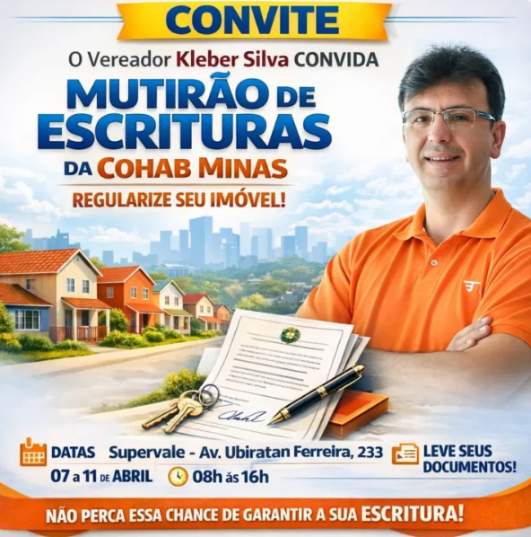 A ação é divulgada pelo vereador Kleber Silva, que convida os moradores a participarem e reforça a importância da regularização documental para assegurar a propriedade legal do imóvel.