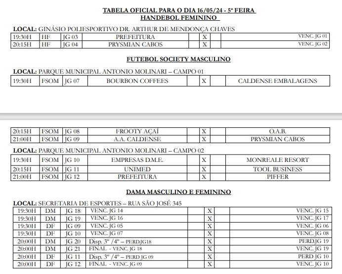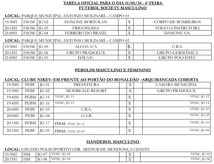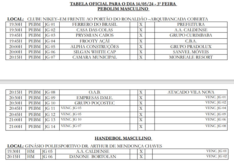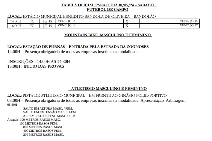A Olimpíada dos Trabalhadores de Poços de Caldas, Olimtra, está movimentando o mês de maio. São 31 modalidades disputadas por mais de mil atletas representando 42 empresas. Neste domingo (12) e na segunda-feira (13) não haverá jogos por conta do Dia das Mães e Dia de São Benedito. Confira a programação da semana: