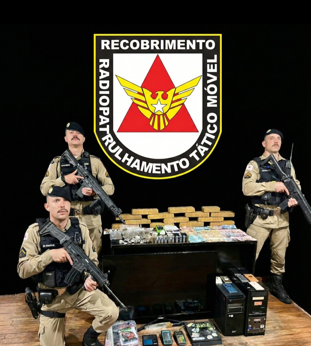 Durante a ação, os militares prenderam dois autores em flagrante e apreenderam cerca de 16 quilos de maconha, 50 gramas de cocaína, sete porções de crack, 13 porções de haxixe e comprimidos de ecstasy. Também foram localizadas munições de diversos calibres, sendo 12 cartuchos calibre 12, duas munições calibre 36 e uma munição calibre .38.