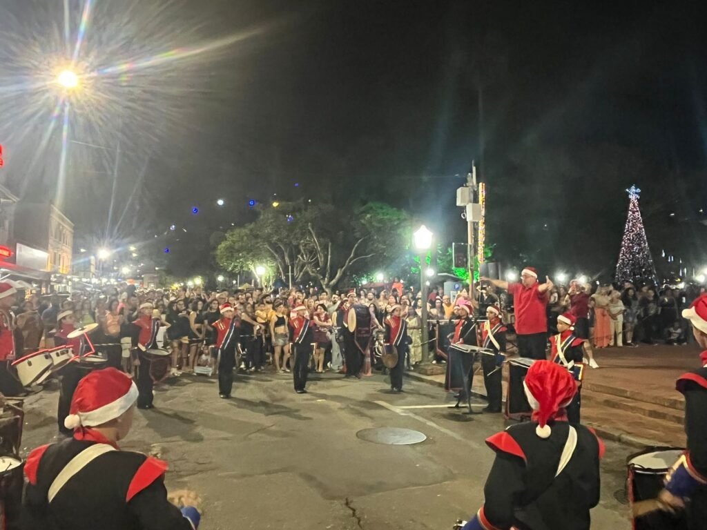 Nesta quinta-feira, 18 de dezembro, a Praça Pedro Sanches será palco de um dos destaques do Natal Poços de Luz. A partir das 19h, a já tradicional Parada de Natal vai apresentar nove agremiações de escolas e instituições, com suas fanfarras desfilando canções natalinas e também clássicos da música mundial, além do Clube do Fusca e da aguardada apresentação dos Artêros de Luz.