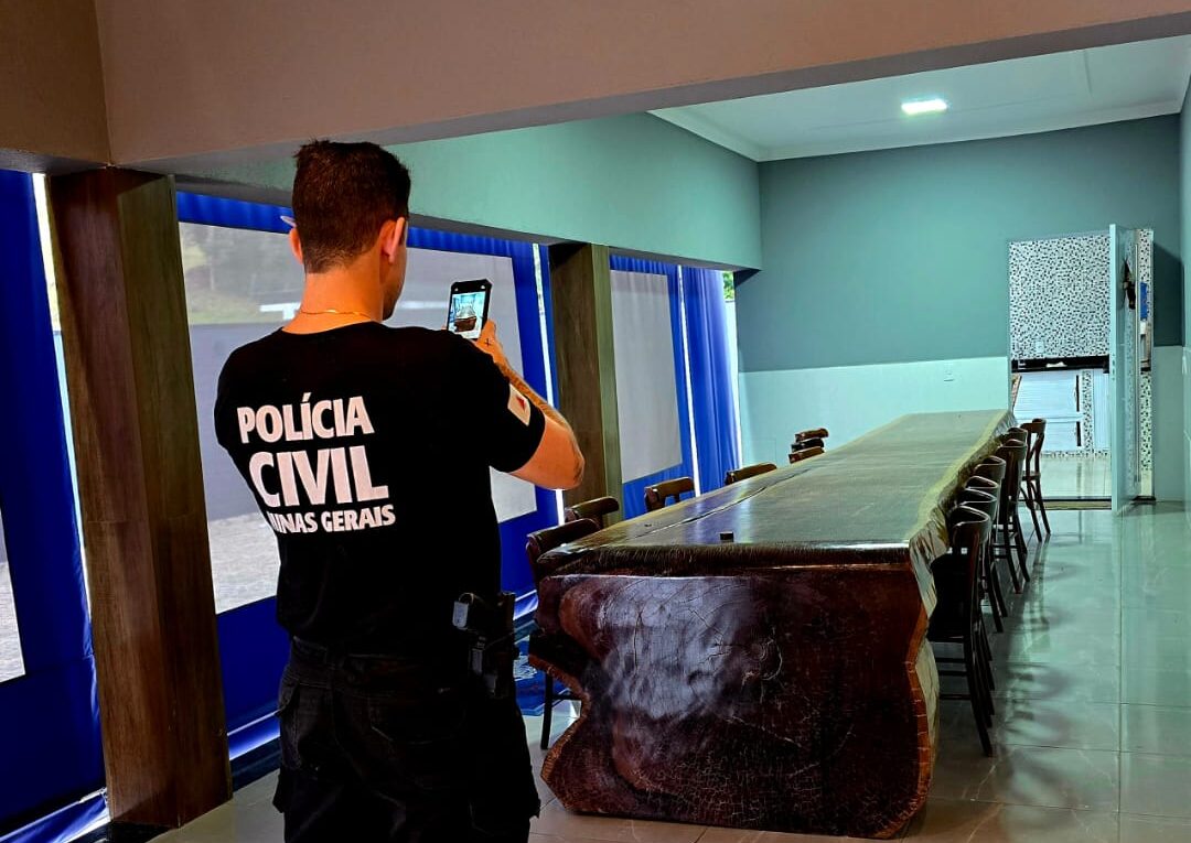 Um dos objetos da busca era uma mesa de madeira maciça, avaliada em mais de R$ 22 mil, que foi adquirida há alguns meses na cidade de Belo Horizonte por um suspeito de estelionato que se encontra preso desde a primeira etapa da “Operação Contra Golpe”, realizada no mesmo município.