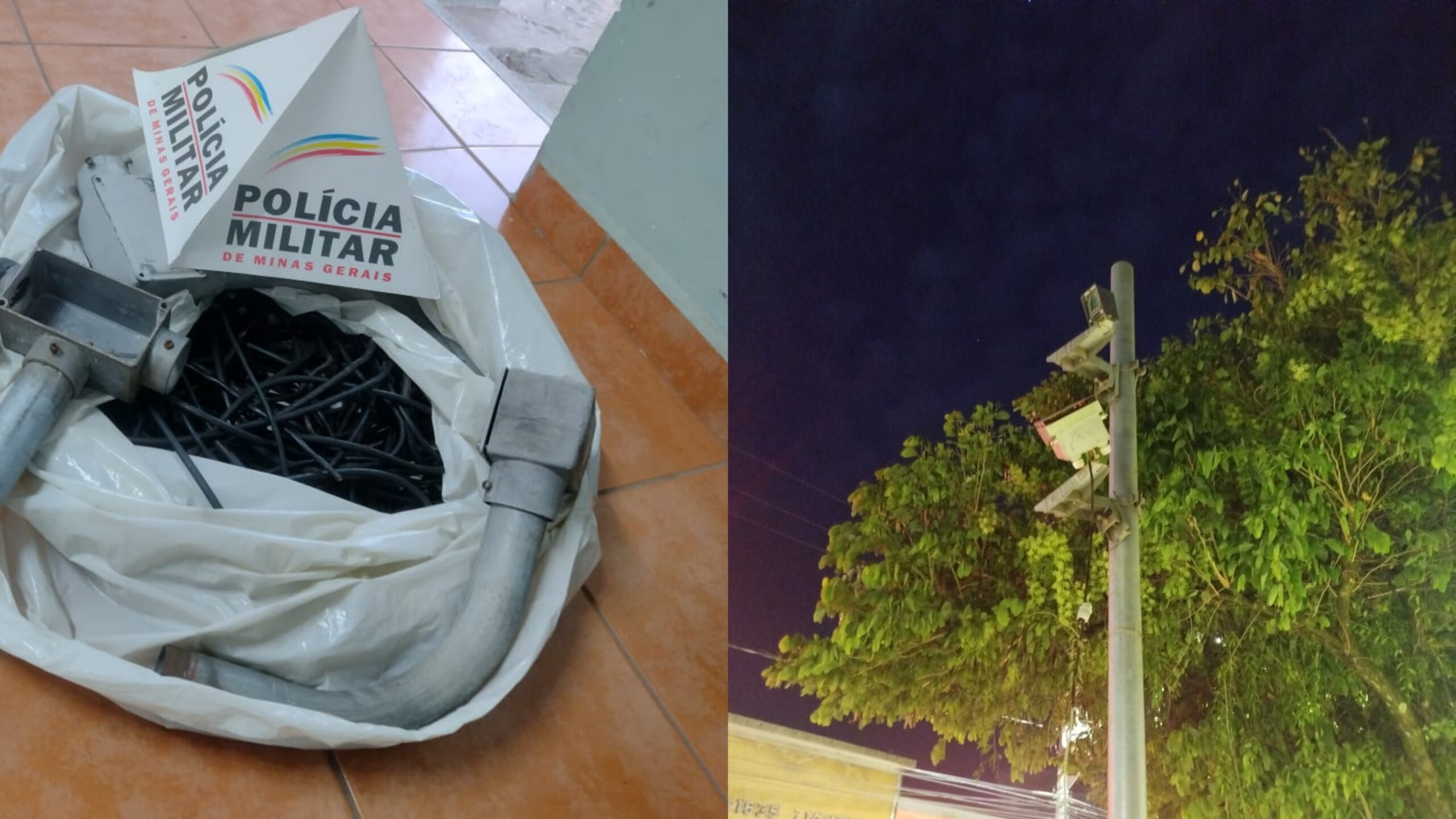 Dentro do saco, os militares localizaram fios de cobre e peças pertencentes à estrutura do equipamento. Segundo a PM, os canos de alumínio que protegiam a fiação foram arrancados e jogados às margens do rio. Placas de sinalização também foram danificadas durante a ação criminosa.