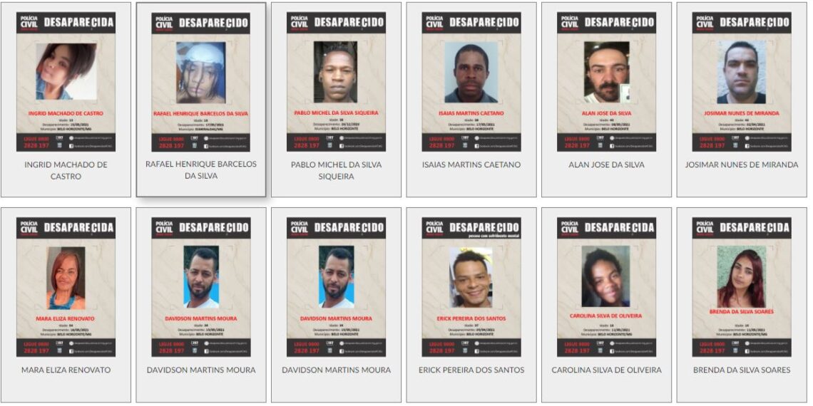 Segundo dados da Sejusp, nos últimos seis meses, 499 pessoas desapareceram em Belo Horizonte, sendo localizadas 449. No interior, para o mesmo período, o número de desaparecimentos é de 2.213, com 1.223 pessoas encontradas.