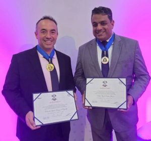 O prefeito de Poços de Caldas, Paulo Ney, e o vice-prefeito, Eduardo Januzzi, estiveram nesta quinta-feira (20/11) na cidade de Santos Dumont, na Zona da Mata mineira, onde receberam a Medalha Santos Dumont, uma das mais tradicionais honrarias do Estado. A cerimônia reuniu autoridades dos Poderes Executivo, Legislativo e Judiciário, além de representantes de instituições civis e militares.