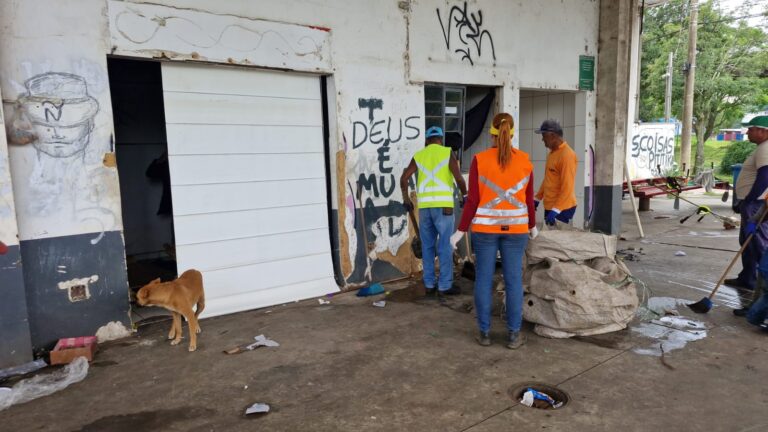 Durante a ação, foram retirados resíduos acumulados no local e realizada a remoção de uma escada que oferecia risco de acesso ao interior do imóvel. A operação ocorreu após solicitação de moradores da região, preocupados com a situação do espaço.
