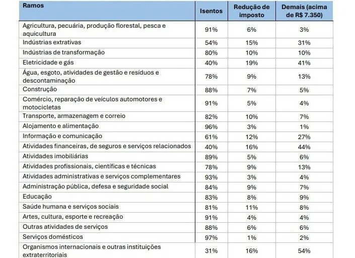 Segundo o Dieese, a maioria dos trabalhadores de setores com salários mais baixos ficou isenta do imposto. No setor de vestuário, cerca de 95% não pagam mais Imposto de Renda. Entre os comerciários, aproximadamente 8,5 milhões de pessoas, o equivalente a 91% da categoria, estão isentas.