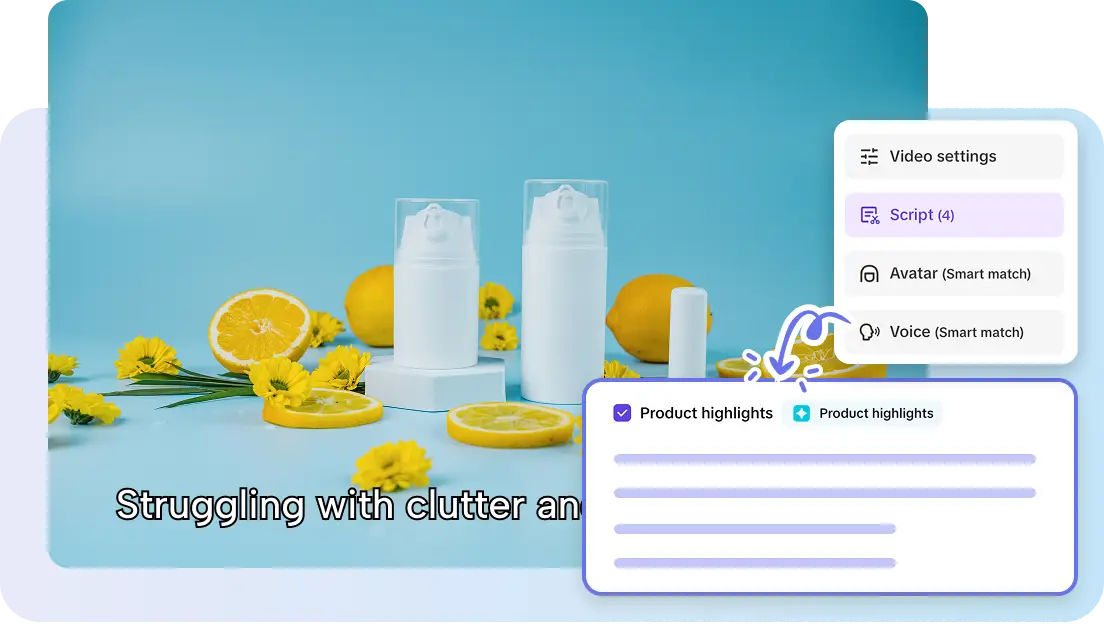 A IA do Pippit converte o artigo, o comando e a mídia em resumos rápidos em vídeo. Ela gerencia automaticamente transições, ritmo e aprimoramentos visuais. Além disso, adiciona automaticamente avatares, voz, letras, legendas e fotos/vídeos para estruturar a narrativa.