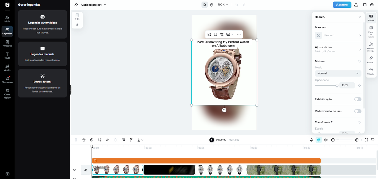 Dentro do editor, as legendas podem ser corrigidas manualmente, o texto ajustado e as cores refinadas. Filtros, efeitos, música de fundo ou a remoção de fundo ajudam a construir um resumo limpo do artigo.