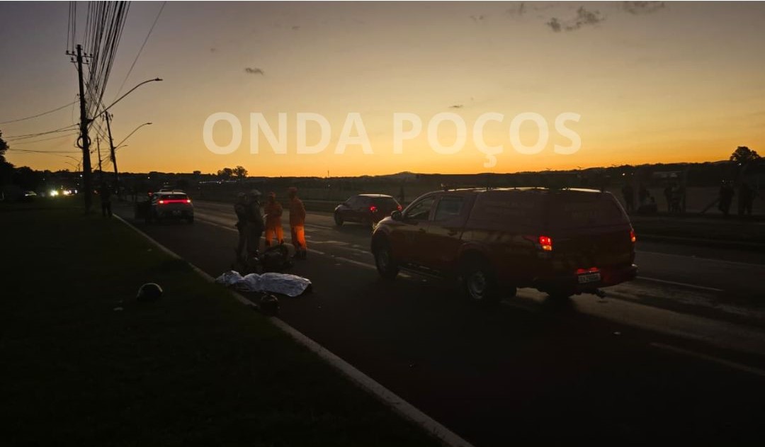 Uma mulher, de 23 anos, morreu e um homem, de 29 anos, ficou ferido após um acidente envolvendo uma motocicleta e um carro na Avenida Alcoa, em Poços de Caldas, na tarde desta segunda-feira (10).