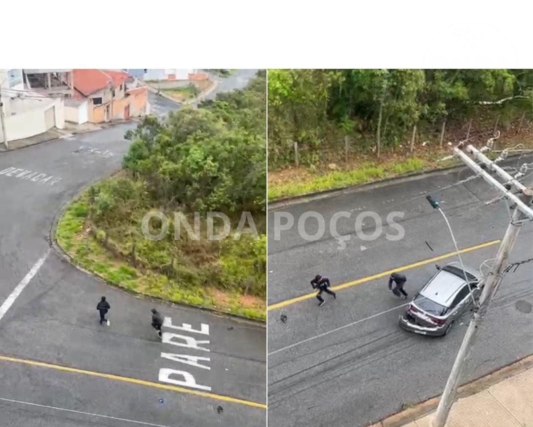 Imagens obtidas pela Onda Poços mostram dois suspeitos fugindo após o carro furtado em que estavam colidir contra um poste de iluminação pública na tarde desta quarta-feira (3). O acidente ocorreu na Avenida Uriel Batista, no bairro Jardim Bandeirantes, em Poços de Caldas.